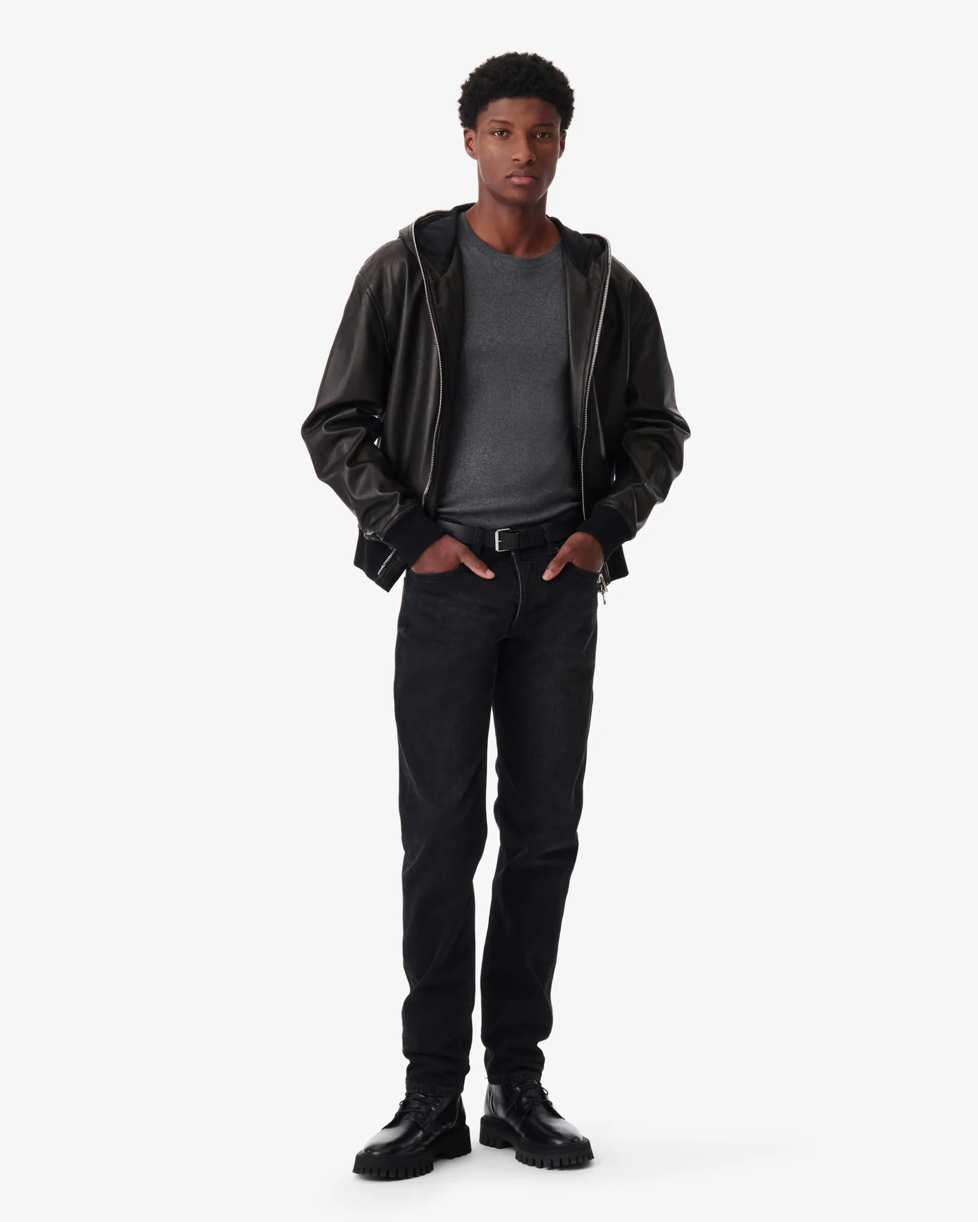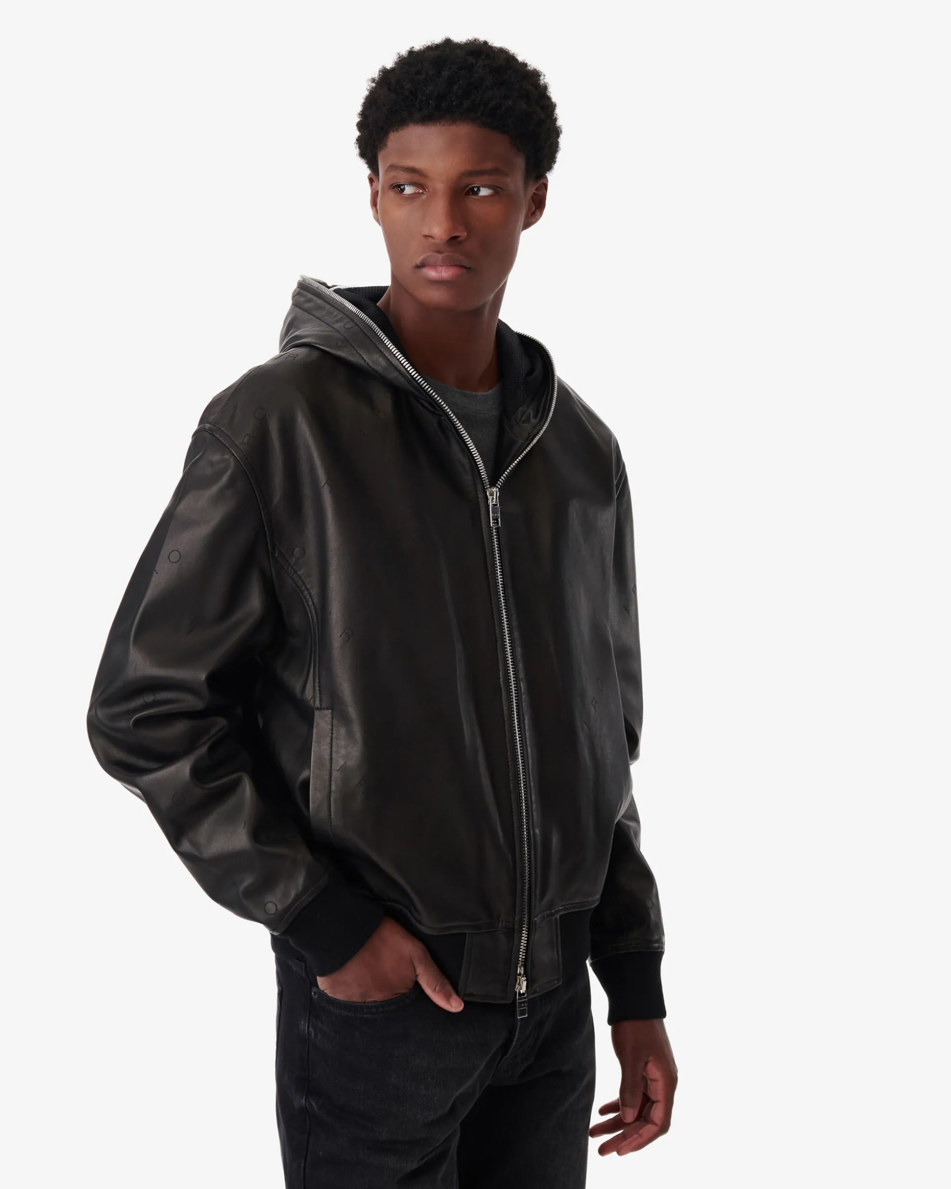 • Veste A Capuche En Cuir Perfore A Logo Iro